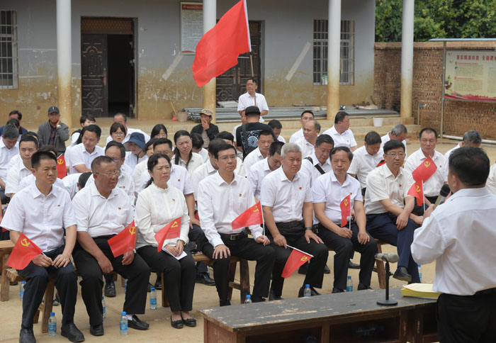 “我志愿加入中国共产党,拥护党的纲领,遵守党的章程,履行党员义务,执行党的决定……”5月14日,州人大常委会机关全体党员干部在位于德厚镇的吴澄洞遗址,面对鲜艳的党旗,高举右手重温入党誓词,深化作为一名共产党员的责任感和使命感。
