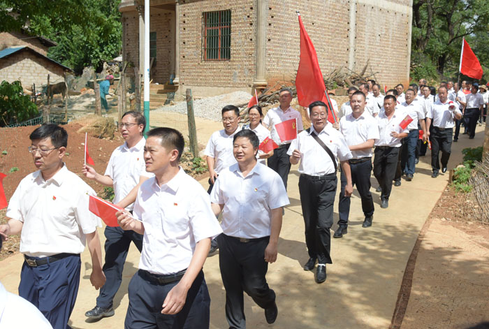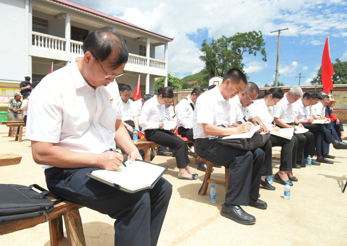 “1928年,为了响应在广大农村积极开展武装斗争的‘八七’会议精神,中共云南省临委决定在文山与红河交界处的小塘子村成立一支由20多名苗族组成的农民武装游击队……”在小塘子苗族农民武装游击队遗址,党员干部们聆听了小塘子革命斗争情况、小塘子苗族农民武装游击队事迹,把他们带回到那段血雨腥风的岁月,在思想上、心灵上受到很大触动和洗礼。