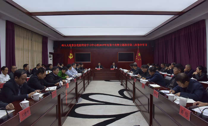 州人大常委会党组书记、主任徐昌碧主持并讲话。州委第十指导组到会指导。党组成员李洁、兰朝明、陶开晖、张仁茂、段自勇,副主任侯强,厅级干部杨廷友参加学习。