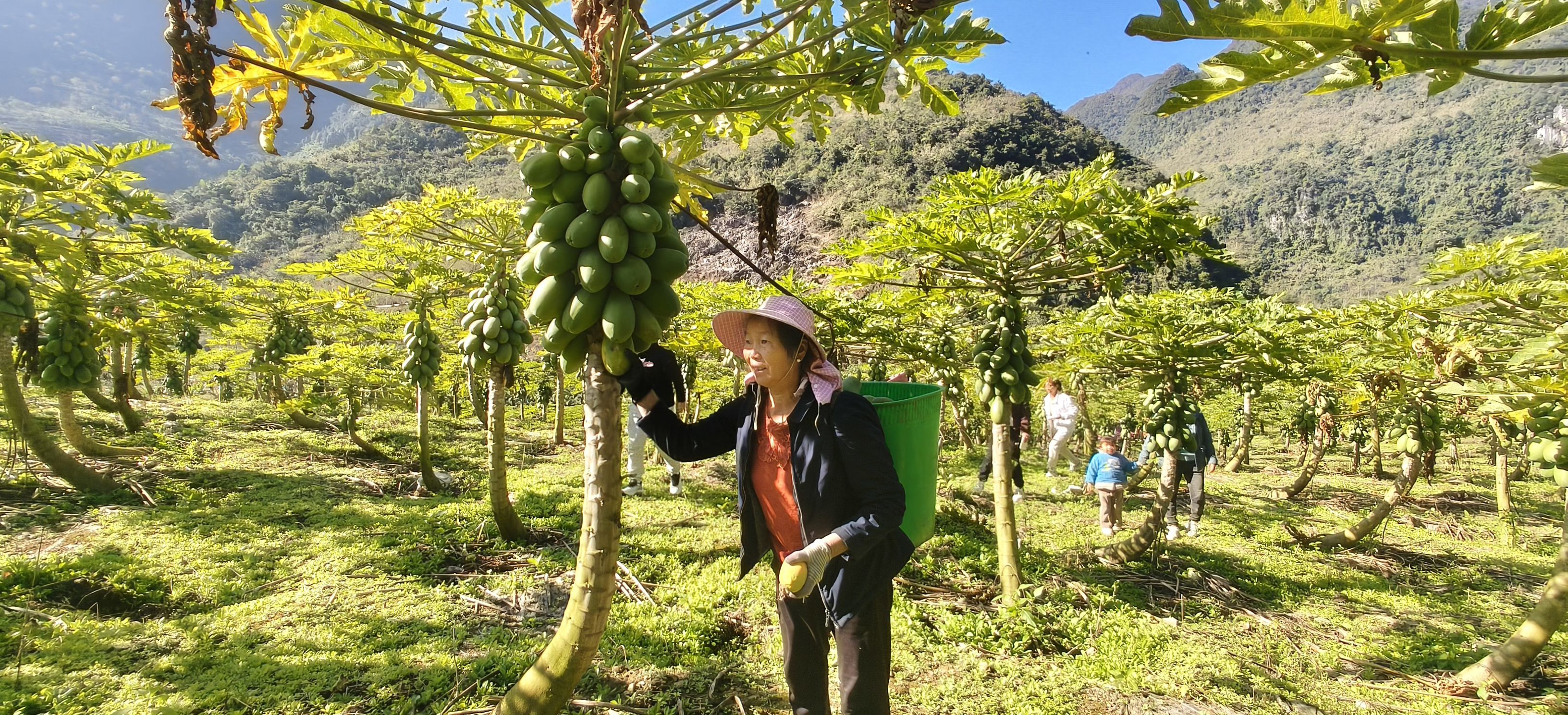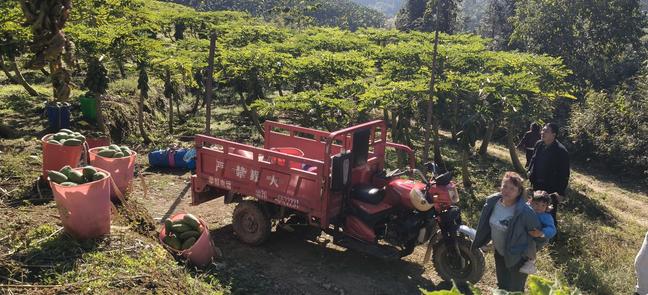冬至刚过,麻栗坡县下金厂乡大火地村的山间还裹着未散的凉意,可村里的木瓜基地里,却是一派热气腾腾的丰收景象。一串串饱满圆润的木瓜沉甸甸地挂满枝头,村民们背着竹筐、提着麻袋,忙着摘果、搬运、装车,欢声笑语顺着风飘向山间。人群中,那个穿着朴素、手脚麻利,一边招呼大家注意安全,一边细心清点果实的身影,正是下金厂乡人大代表张兴萍。她的双手沾着泥土,额头上沁着细密的汗珠,脸上却挂着亲切的笑容。