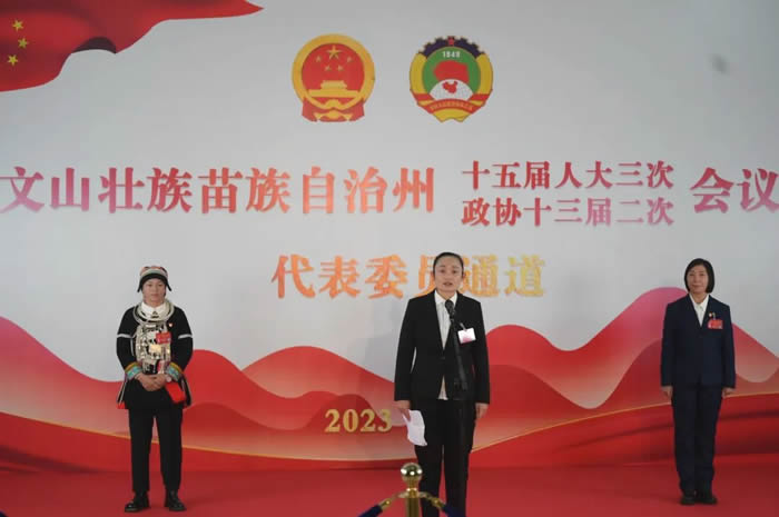 今年,文山州“两会”继续开启“代表委员通道”,今天(1月7日)上午,9位人大代表亮相“代表通道”。