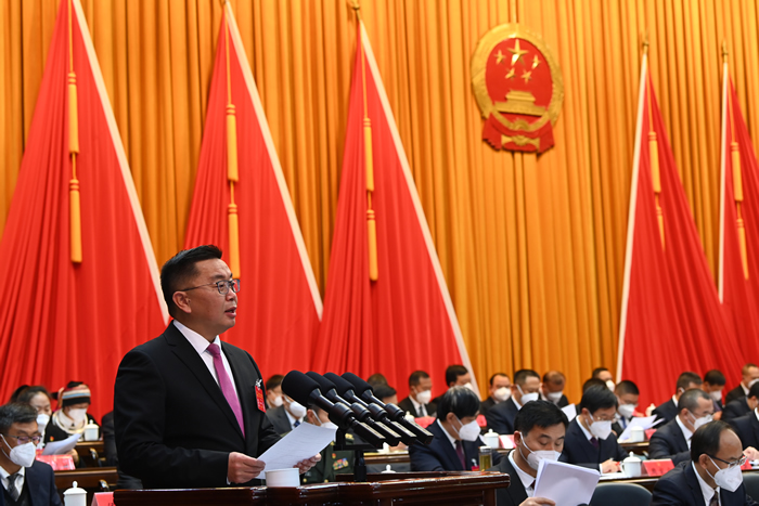 州长马忠俊代表州人民政府向大会作政府工作报告。