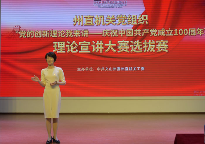 今年是中国共产党成立100周年,为扎实开展党史学习教育,进一步营造“学党史、悟思想、办实事、开新局”的浓厚氛围,推动党史学习教育成果转化为实际行动,确实做到“学史明理、学史增信、学史崇德、学史力行”,州人大常委会机关按照党史学习教育具体工作安排清单,积极开展党史学习教育系列活动。4月初,全州“党的创新理论我来讲——庆祝中国共产党成立100周年”理论宣讲大赛启动后,州人大常委会机关积极组队参加,选送语言类作品《吴澄洞,那些戛然而止的青春记忆》、文艺类作品《文山,我为你骄傲》参赛。