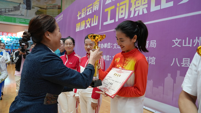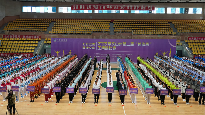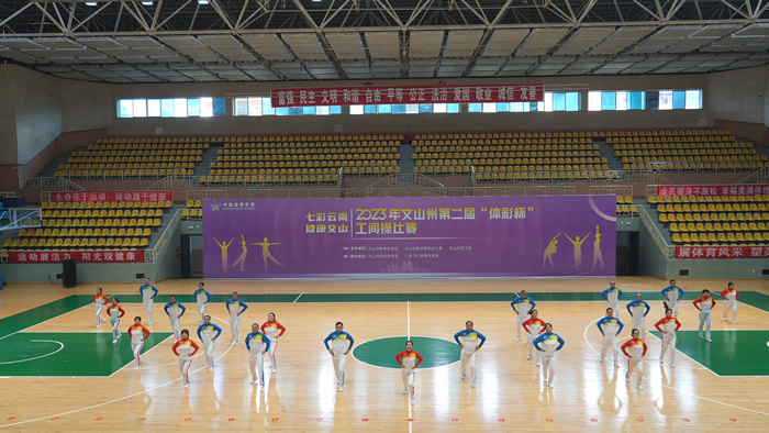 伴随清晨霜风,沐浴冬日暖阳,12月10日,文山州第二届“体彩杯”工间操比赛在州民族体育馆举行,来自文山州各县(市)单位的33支代表队参加比赛。州人大常委会机关代表队积极备战,在比赛中发挥出色,荣获三等奖。